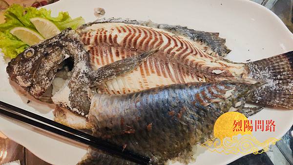 烤鹽魚:原住民必備菜色,烈陽每次家裡烤肉都會有這道烤鹽魚,魚肉鮮美,好大一隻台灣鯛
