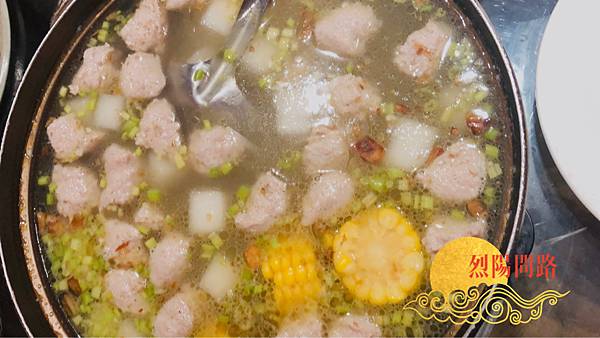 什蔬丸子湯:鮮肉丸子、新鮮蘿蔔玉米、濃郁雞湯,這道湯品非常好喝
