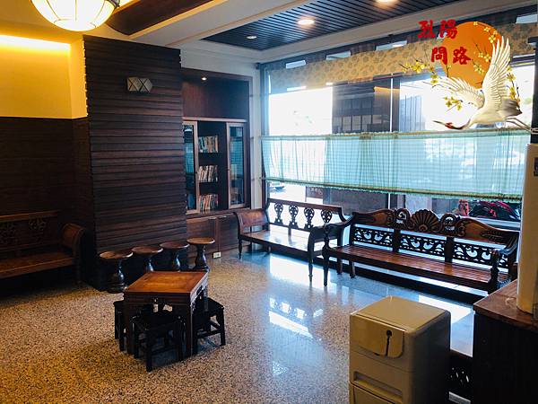 圓緣中醫診所等候區:木質椅子、木質牆壁,古色古香。