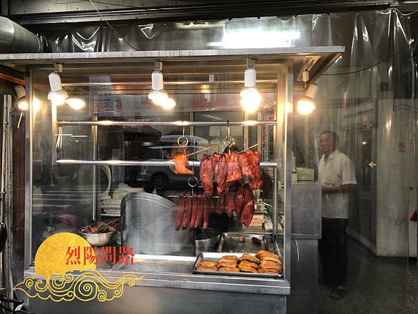 老闆在門口掛著燒臘等肉品: