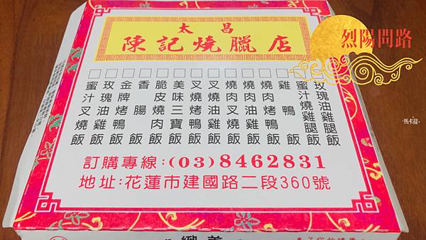 烈陽今天來介紹一間很好吃的便當店「陳記燒臘店」,在吉安鄉三角市場對面、鄰近慈濟技術學院,這間店不論叉燒、燒肉、油雞、烤雞都很好吃,入味又香,配菜也好吃。