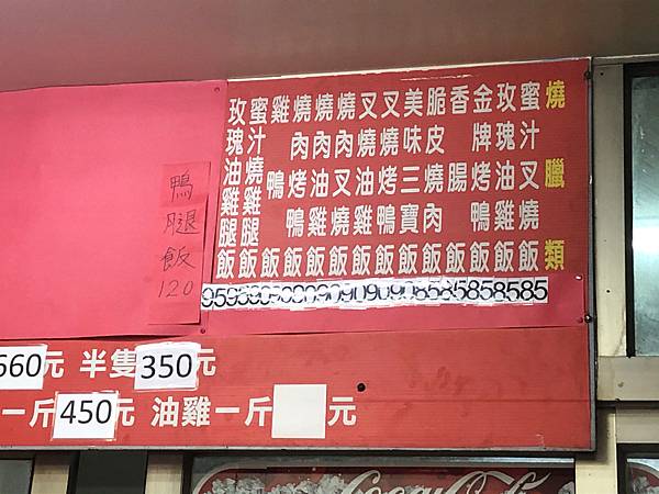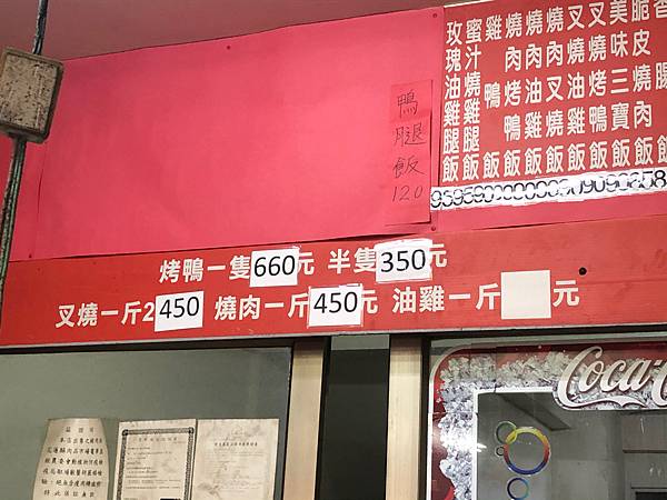 菜單:還有賣一整隻雞、烤雞、烤鴨、叉燒、燒肉