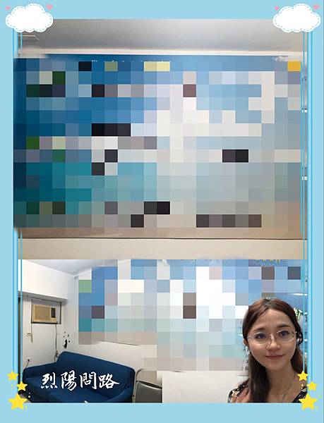一進門就是水藍色沙發跟原水戰區三元合一介紹「定位、念佛、禱告」,好熟悉的感覺,很興奮的參觀自拍。照片打了馬賽克,看倌先自行想像一下~![]()