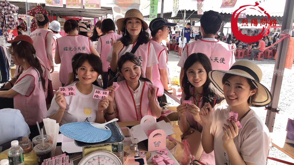 小雨問路、空靈問路也再找能到路邊叫賣的商品,家人們不僅僅待在攤位內,也會到攤位外叫賣,不畏大太陽依然將作愛心的熱情散發給每一個人。