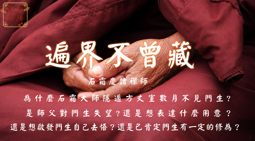 僧團相處當中,有人懷疑師父留一手、不幫忙、沒有完全教育弟子,「遍界不曾藏」師父透過隱遁代表是誠實、是真心的、沒有藏私的。