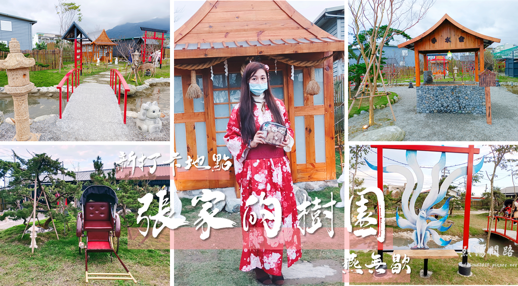 今年111年1月25日試營運的張家の樹園,擁有多處日式庭園造景,只要幫店家IG打卡或FB打卡即可免費租借和服,有仿日本的廟宇、小橋流水、盪鞦韆等,是花蓮新熱門打卡景點。