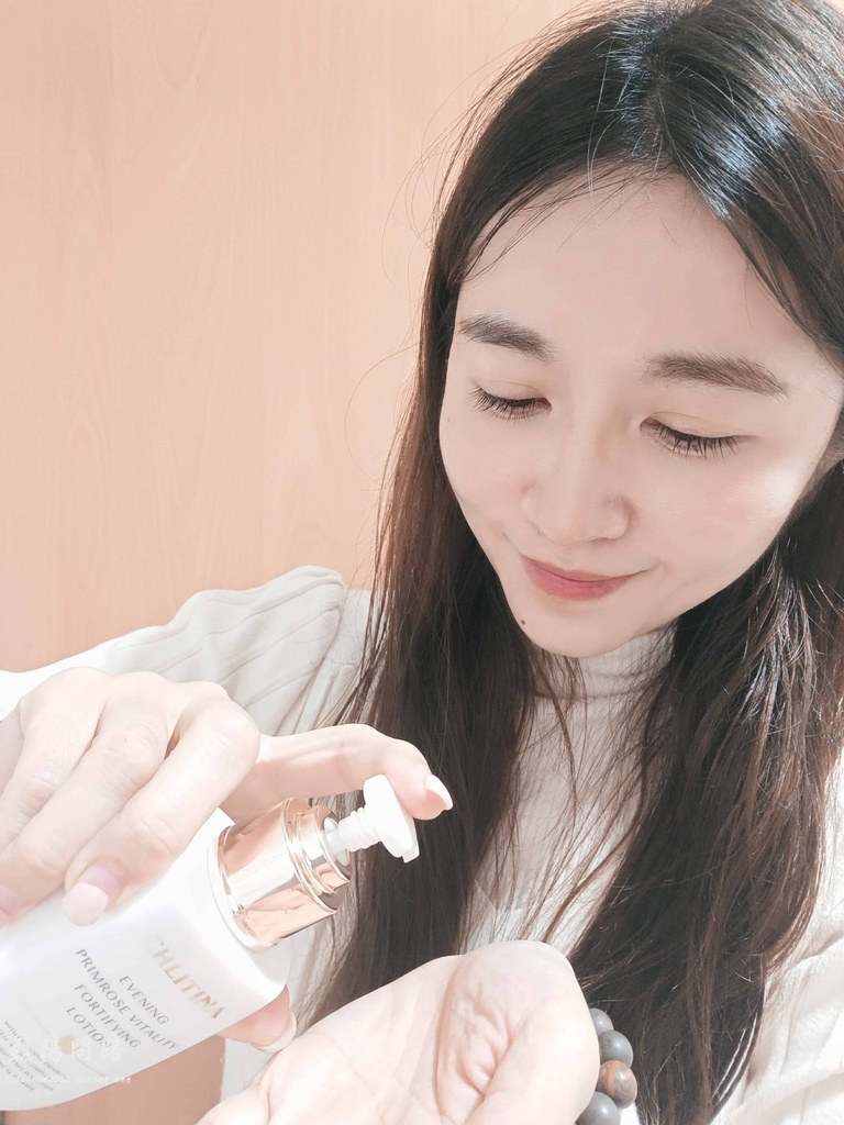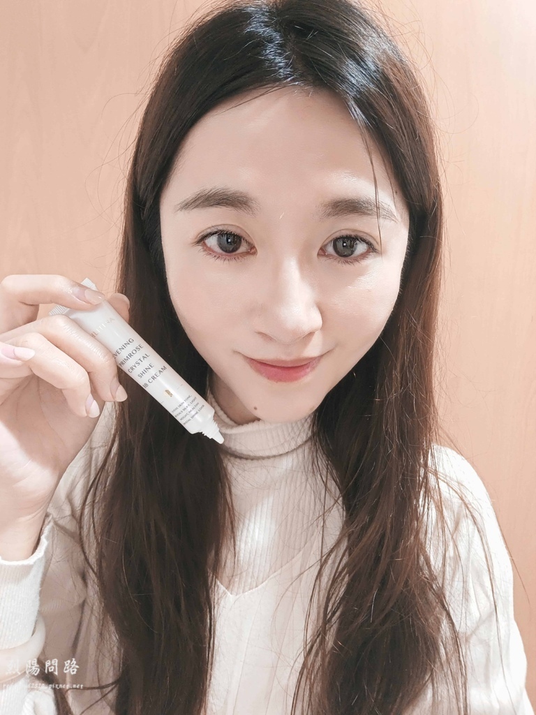 輕柔的搓合並且擦於全臉和頸部,抹完之後,肌膚瞬間有補水、呼吸的感覺,本來因為氣候變化乾燥的緊繃感,瞬間舒緩了,因為有4種月見草精華的精華油,臉上顯得特別透亮有光澤,感覺氣色就變好了呢!