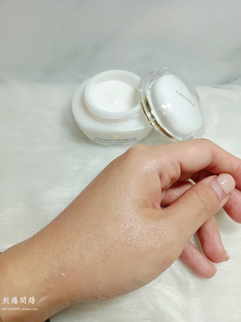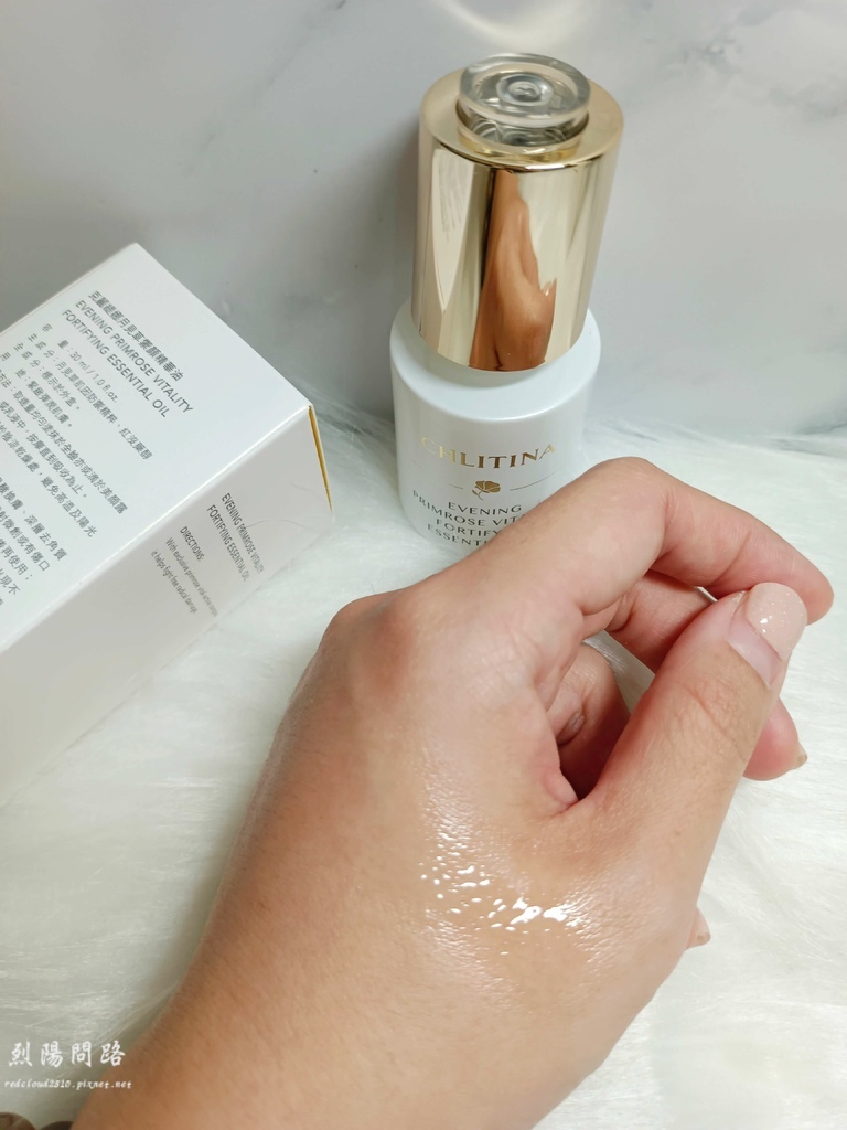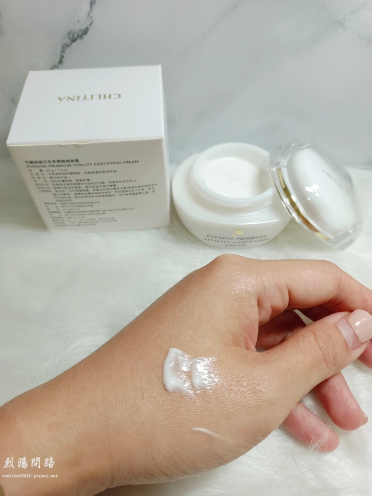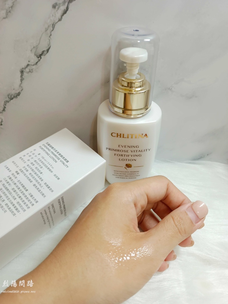 而克麗緹娜月見草禦顏系列不僅能補水肌膚,還能緊緻肌膚,是防禦抗老的保養品喔!烈陽在使用的這幾天,會覺得肌膚緊緻有彈性,而且沒有過多的香精味,而是草本香味,這點也是烈陽滿喜歡的。