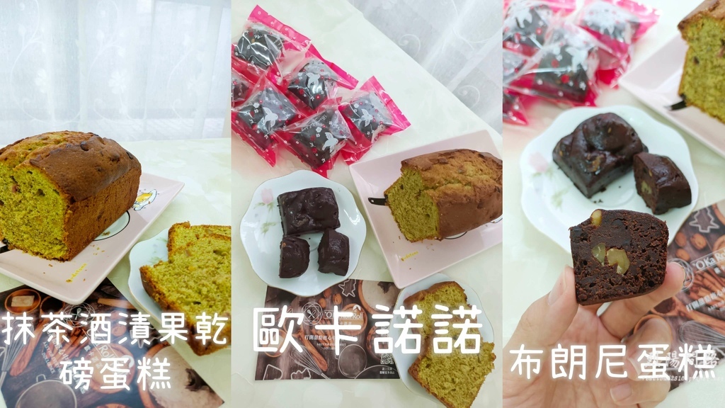 這次烈陽收到了O Ka Roll Roll歐卡諾諾巧克力布朗尼蛋糕、抹茶酒漬果乾磅蛋糕,